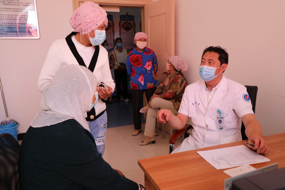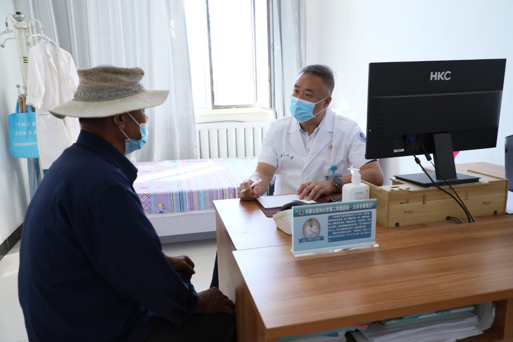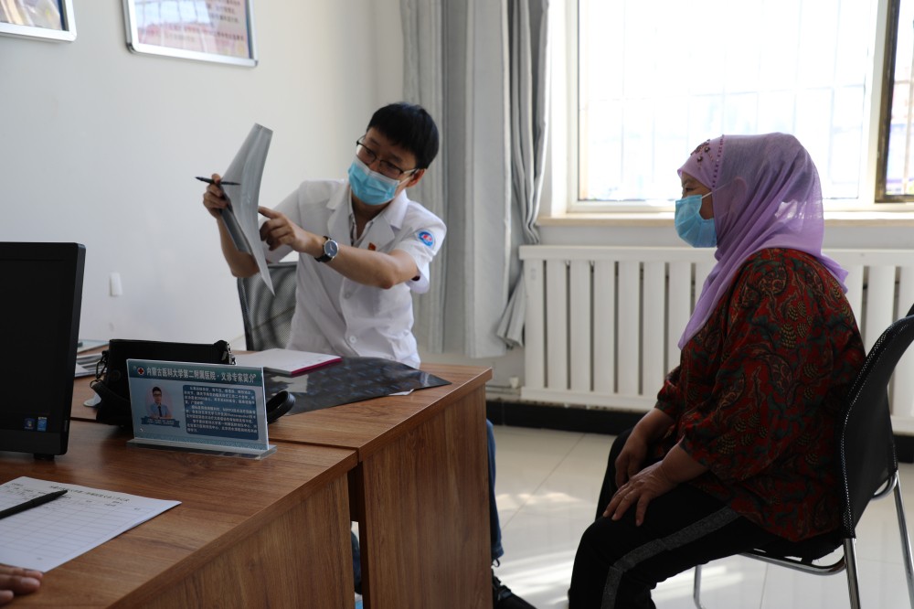 阿左旗巴彦木仁苏木地处乌兰布和沙漠腹地,交通不便,经济落后,群众看病就医只能到巴彦淖尔市磴口县和毗邻的银川,“看病贵,看病难”问题依然存在。由于受自然环境及生活习惯等多种因素影响,这里的农牧民患腰椎疾病及骨关节炎的居多,迫切需要骨科专家提供医疗服务。91直播党委积极探索“党建+社会服务”工作模式,充分发挥91直播 技术力量雄厚的优势,主动上门开展服务。专家们不仅解答群众有关医学、保健知识方面的问题,还耐心为患病群众检查身体,提出治疗建议。一上午的义诊活动中,专家们为巴彦木仁苏木周边100多名农牧民进行了免费义诊,当日最高气温为35℃,专家们不顾炎热的天气,义诊一直持续到中午12:30,高尚的职业操守令在场群众颇为感动。