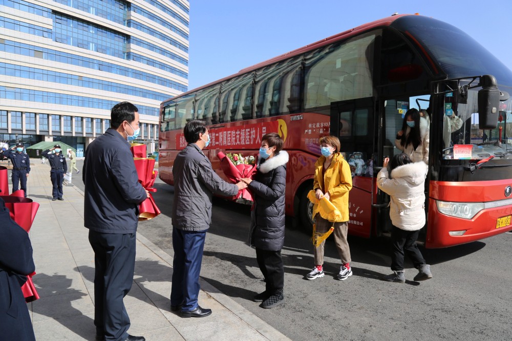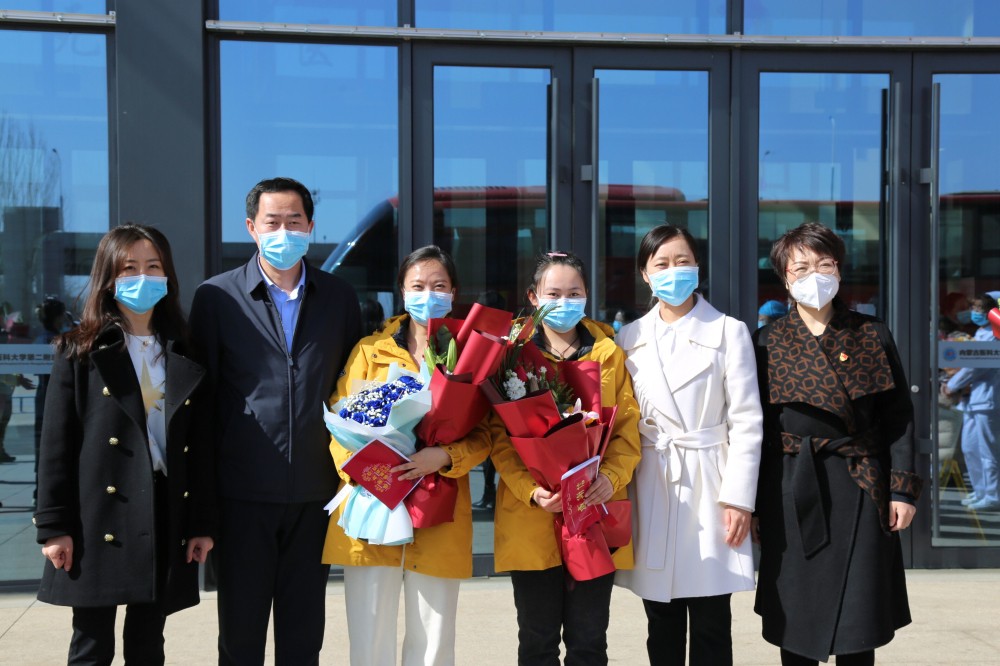 春寒料峭出征时,你们是最美丽的“逆行者”;草长莺飞凯旋日,你们是最靓丽的“风景线”。3月12日上午,在圆满完成支援武川县核酸检测任务后,91直播27名医护人员全部平安归来。91直播 党委副书记、院长王国强,党委委员、副院长邢文华带领党办、纪委办公室、宣传部、工会、团委、院办、护理部等相关部门负责人迎接抗疫医护人员回家,向她们致以最崇高的敬意,并送上鲜花和祝福。