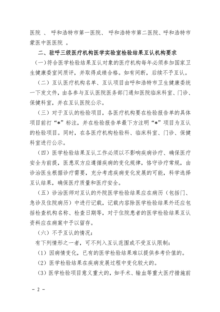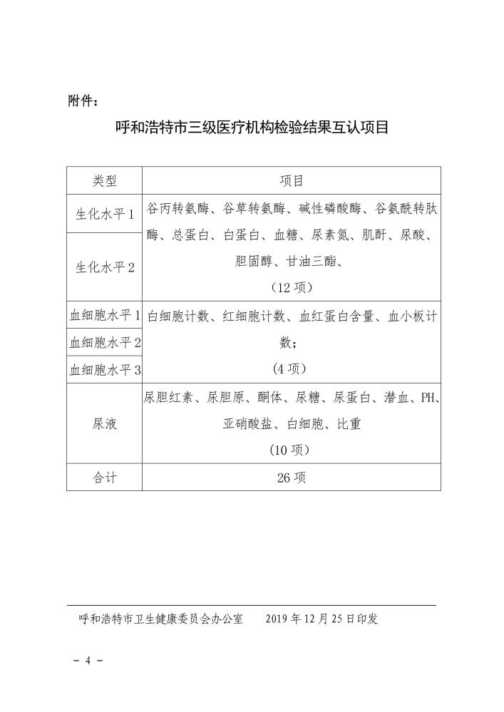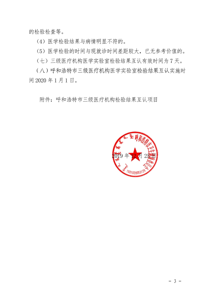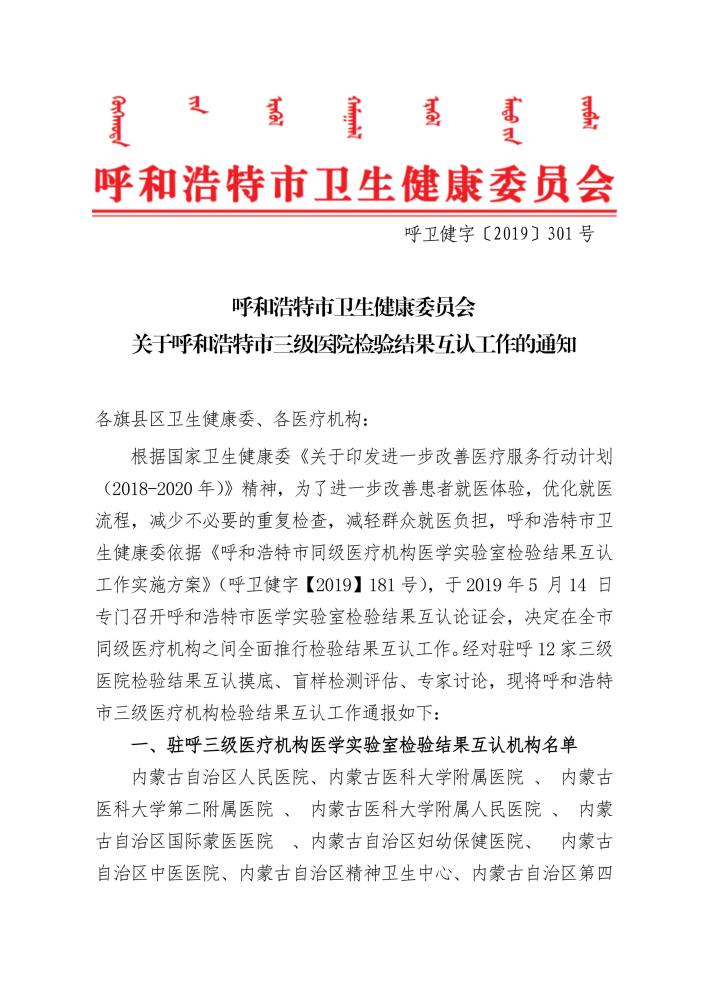 呼和浩特市卫生健康委员会 关于呼和浩特市三级91直播 检验结果互认工作的通知