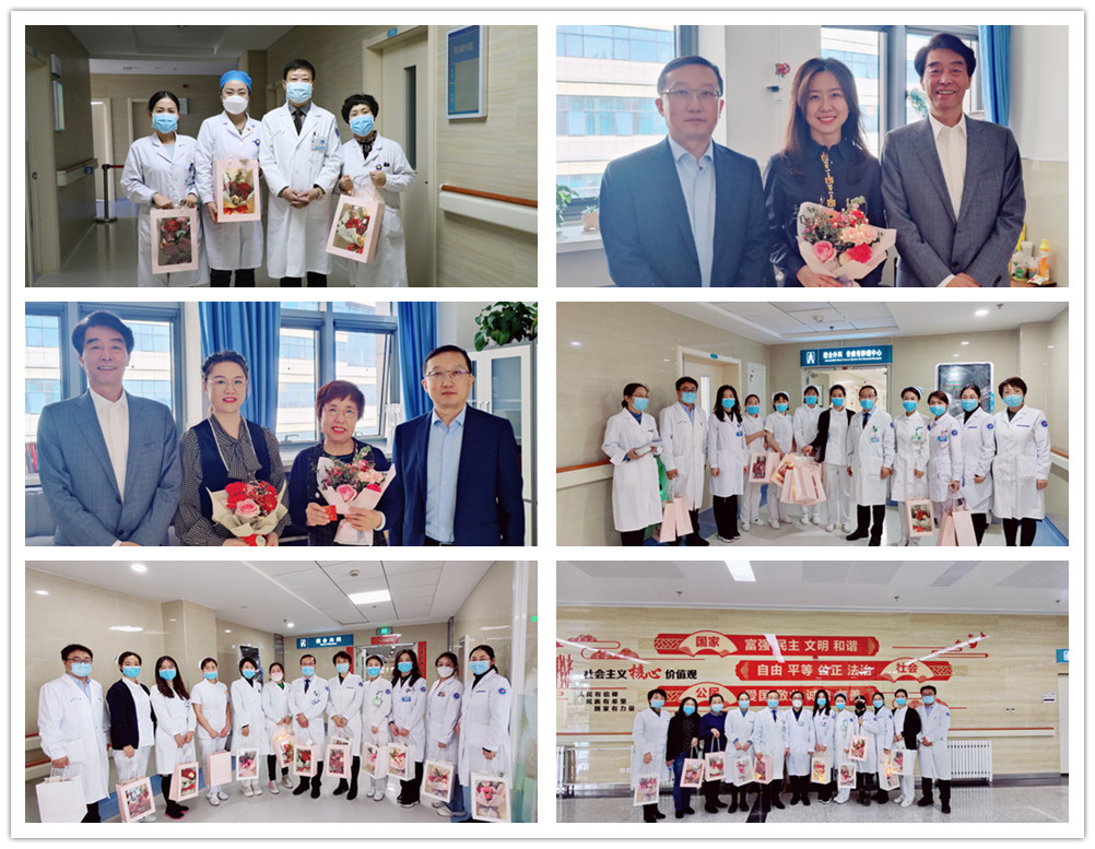 阳春三月,春暖花开。今年第112个“三·八”国际妇女节如期而至,为让广大女职工们度过一个开心、愉快的节日,3月8日上午,91直播 党委书记刘万林,党委副书记、院长王国强,党委委员、副院长邱颐带领相关职能部门负责人亲临各科室开展“三·八”国际妇女节慰问活动,向在临床一线和行政后勤辛勤工作的女职工们送上91直播 党委的关心与问候,对她们在疫情防控和医疗救治工作中始终坚守岗位,为保护人民群众身体健康和生命安全作出的贡献表示衷心感谢。