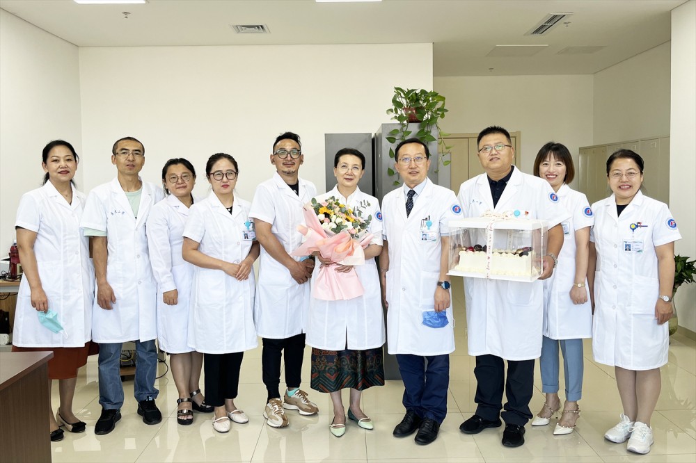 院领导每到一处,都与医师们亲切交谈,为他们送上鲜花、蛋糕与节日的祝福,了解他们工作和生活情况,对他们在工作岗位上辛勤付出表示衷心感谢,对他们在工作中取得的成绩予以充分肯定。