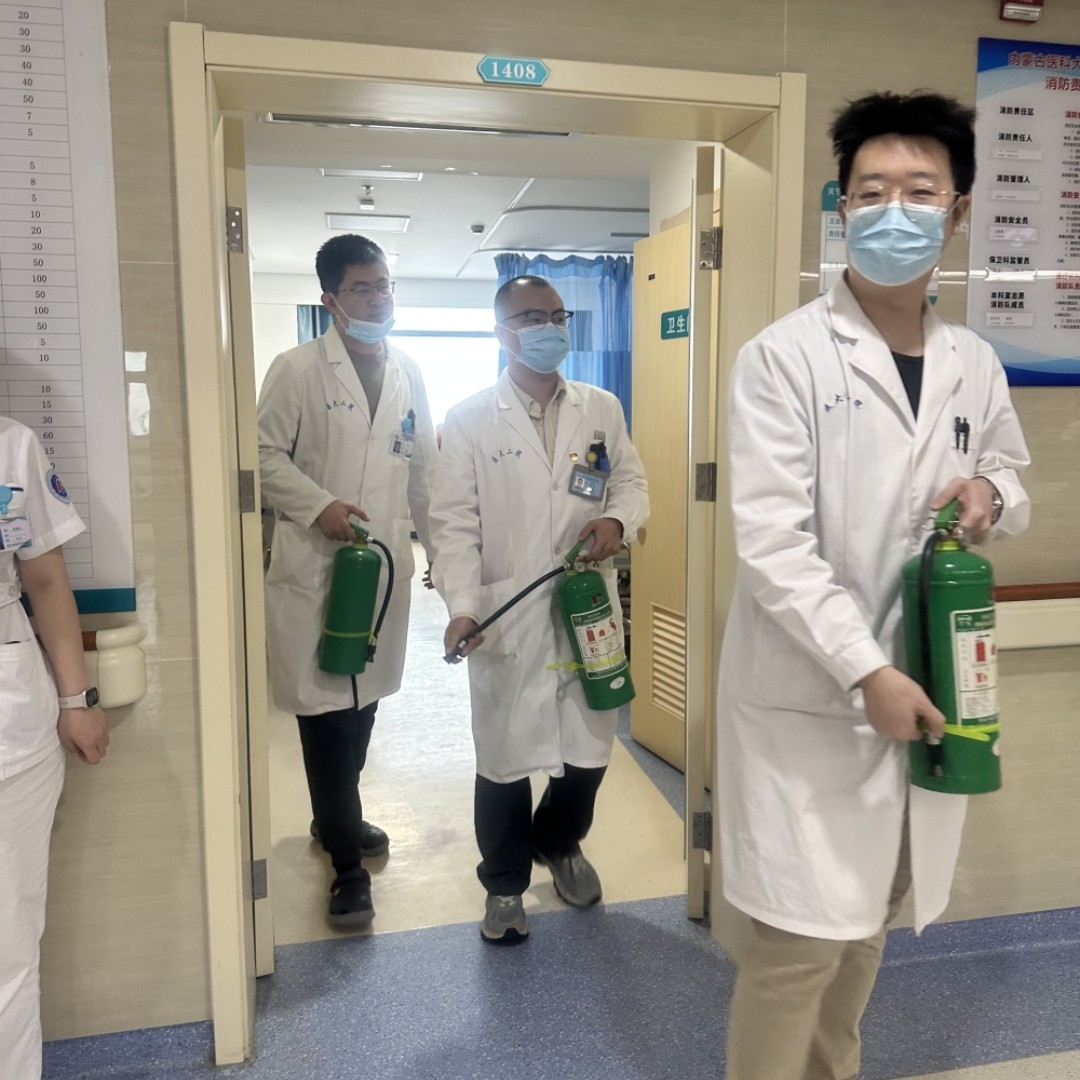 本次消防安全培训采用“消防知识培训+应急演练”相结合的方式进行。在演练前,科室全体医务人员先进行了内部学习,了解消防控制报警器、安全消防通道、灭火器、防烟面罩等消防设施的功能及使用方法,掌握初期火灾扑救、自救逃生及协助救人逃生技能、日常火灾防治措施等消防安全知识,有力强化了全体医务人员的消防意识和紧急应对能力。