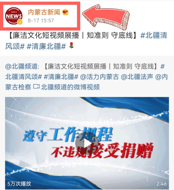 我们医务人员上央视啦!一则《知准则 守底线》的廉政短视频通过融媒体在朋友圈迅速转发,获得大量点赞。