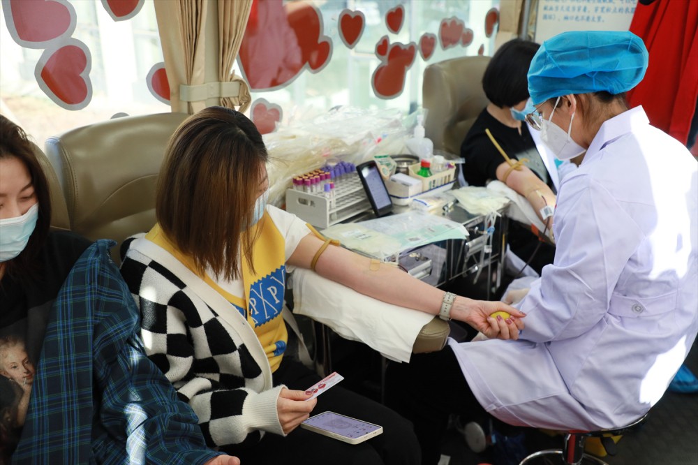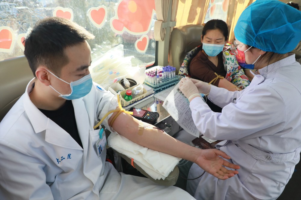 通过各项筛查后,献血车上献血者逐一伸出手臂,让充满爱心的血液缓缓流入储血袋。他们当中有刚刚查完房的医生,也有刚下夜班急忙赶来的护士;有利用工作间隙赶来的行政人员,也有在执勤中匆匆赶来的安保人员;有工作经验丰富的科主任,也有刚刚参加工作的年轻人。“刚上完夜班,检查出来转氨酶有点高,只能暂缓献血。”虽然部分职工因为身体状况未能通过筛查,但他们依旧表示等调整好身体状况后一定会再去献血,关爱他人、回报社会的爱心从未改变!