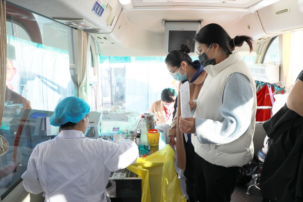 一大早,报名献血的职工准时来到献血活动现场,他们自觉地排起长队,在医务部工作人员的引导下填表、体检、验血,现场气氛温馨、秩序井然。