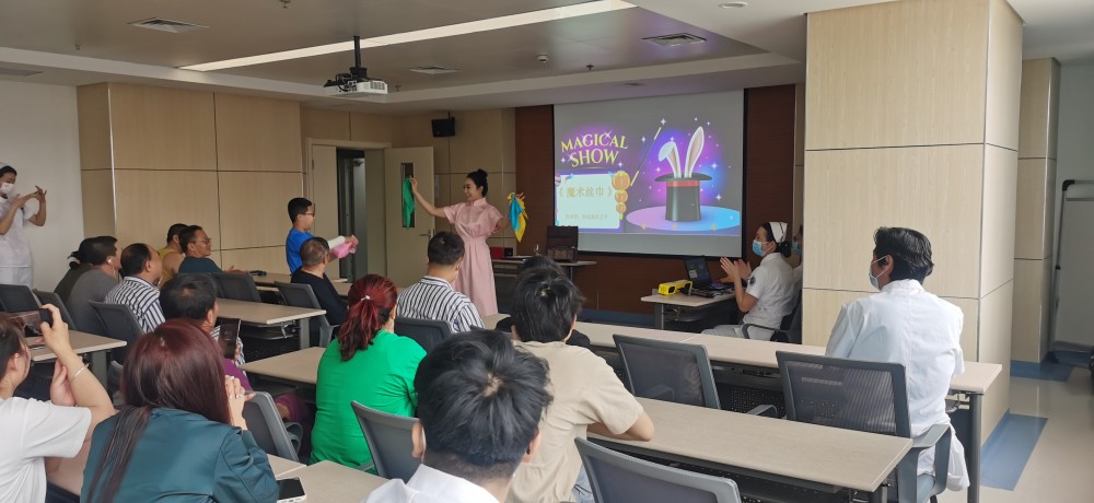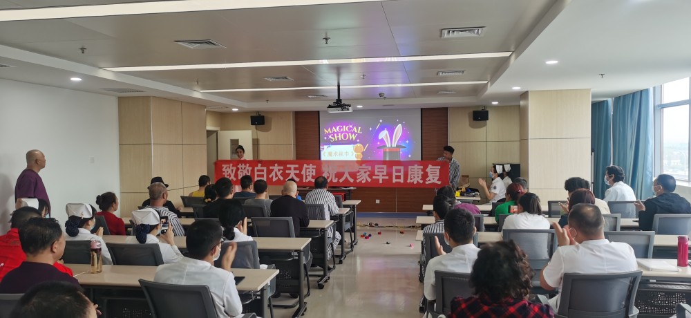 听说康复医学中心的住院的患者多数病情较重,恢复周期长,两位专家与第六党支部书记沟通后,决定为广大住院患者们进行魔术表演和歌曲演唱,通过自己所学专业,为患者们带来了快乐,同时衷心地祝愿大家能够早日康复。本次演出也是两位专家为5.12护士节准备的献礼活动,对悉心照顾患者的护士们表达崇高的敬意和美好祝福。