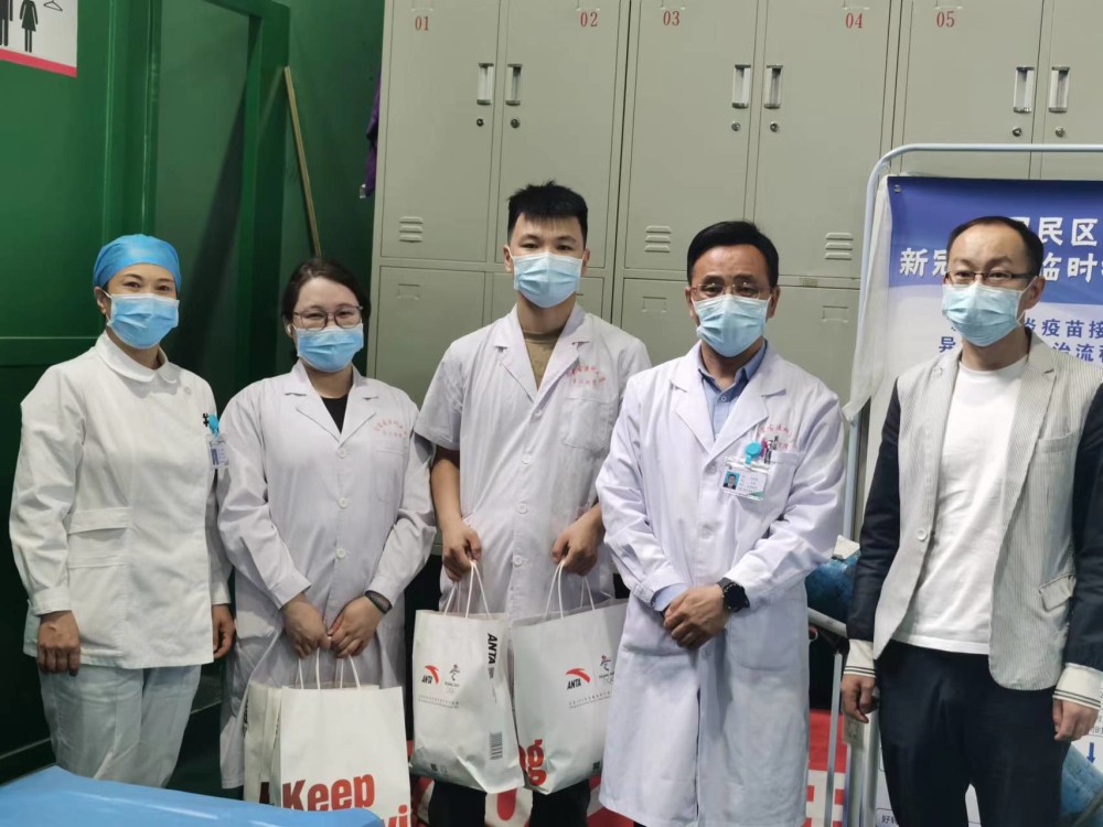 5月4日、5日,在中国共产主义青年团成立100周年之际,医院副院长冯卫代表医院慰问91直播 奋战在高速路口核酸检测点、伊生泰及呼和浩特体育馆疫苗接种点医疗保障工作人员,带去了医院对她(他)们的关怀与温暖,急救中心、护理部、团委、工会部门负责人陪同。