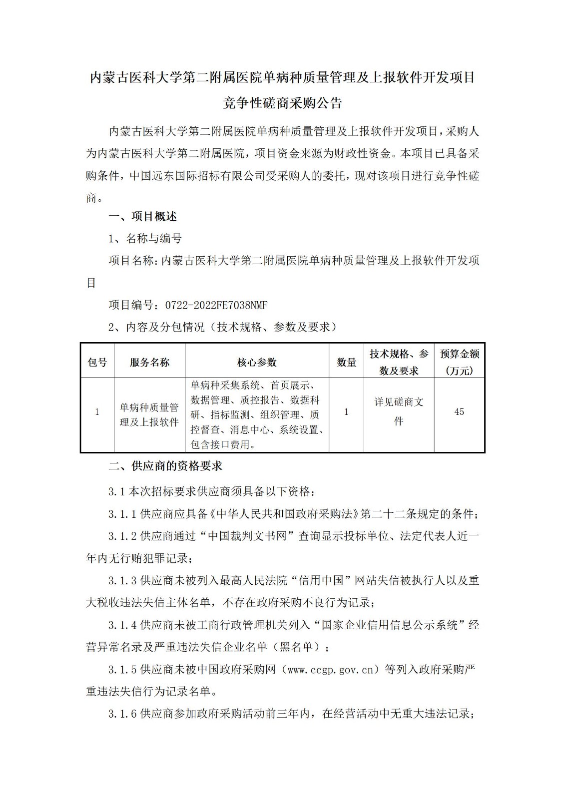 91直播单病种质量管理及上报软件开发项目 竞争性磋商采购公告