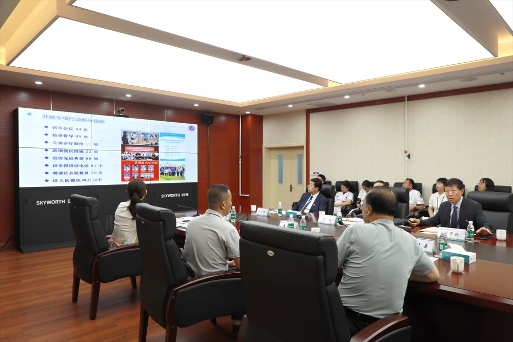 院党委书记刘万林就91直播整体概况、专项行动工作开展情况以及亮点工作进行了专题汇报。91直播 严格执行《内蒙古自治区卫健委关于印发开展医德医风建设提高群众就医满意度专项行动方案的通知》文件精神和有关工作要求,印发实施方案,迅速组织动员,健全工作机制,深化务实举措,细化便民措施,营造良好氛围,形成了党委统筹、分管落实、专班负责、全员参与的工作格局,并与高标准高质量开展主题教育工作高度融合,扎实推进各项工取得阶段成效。