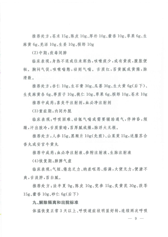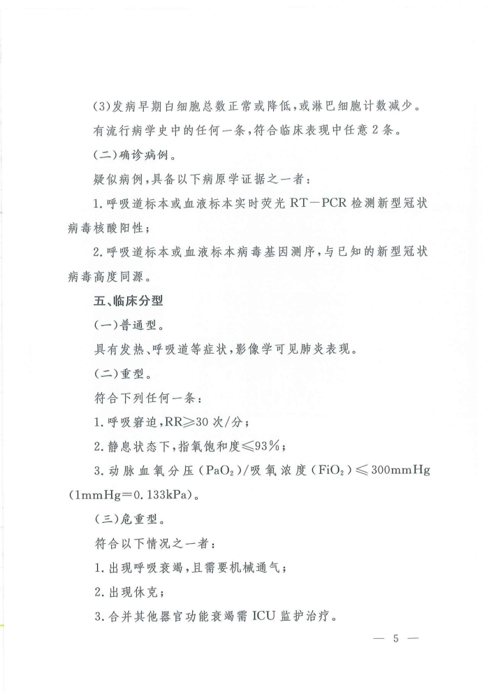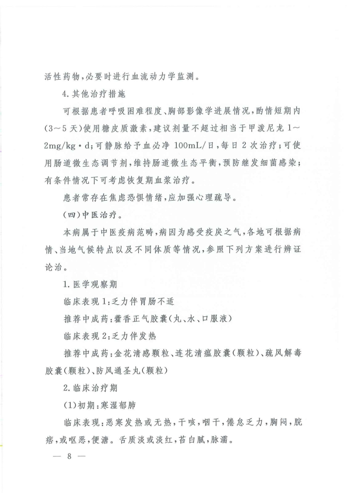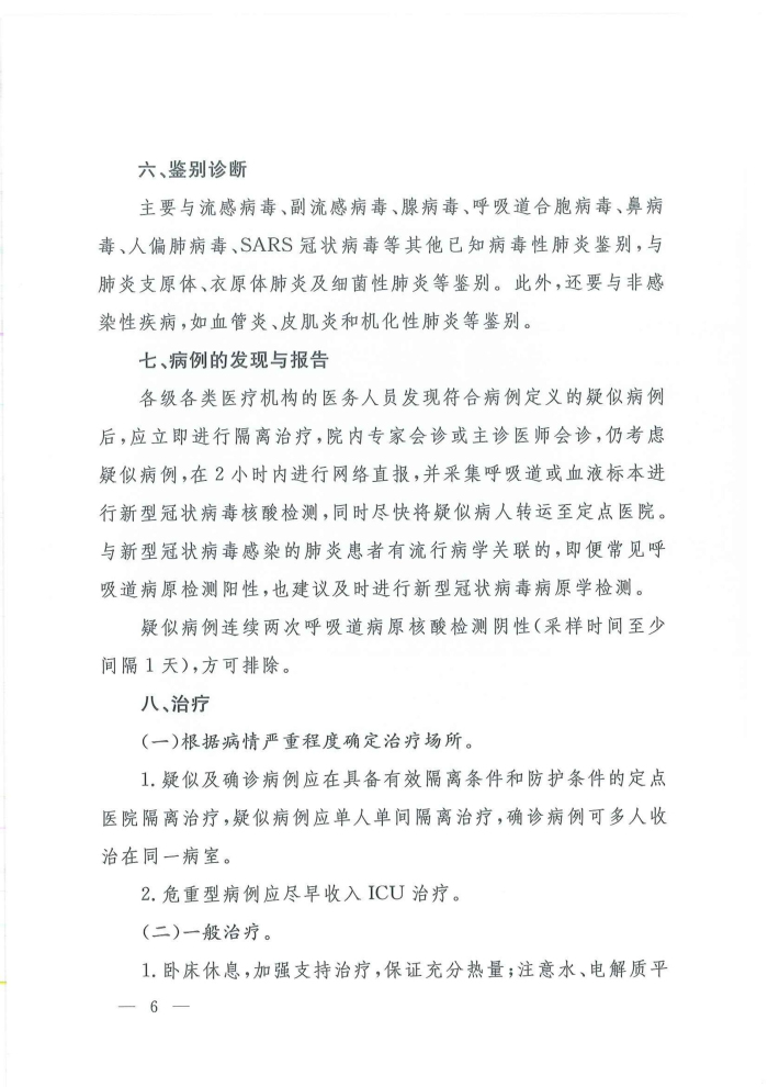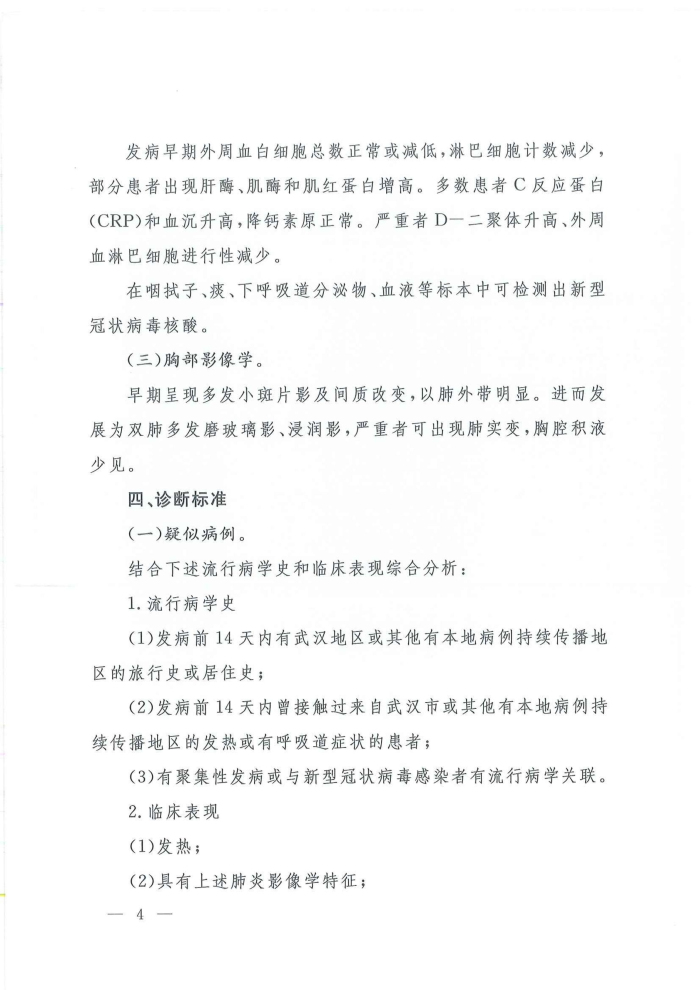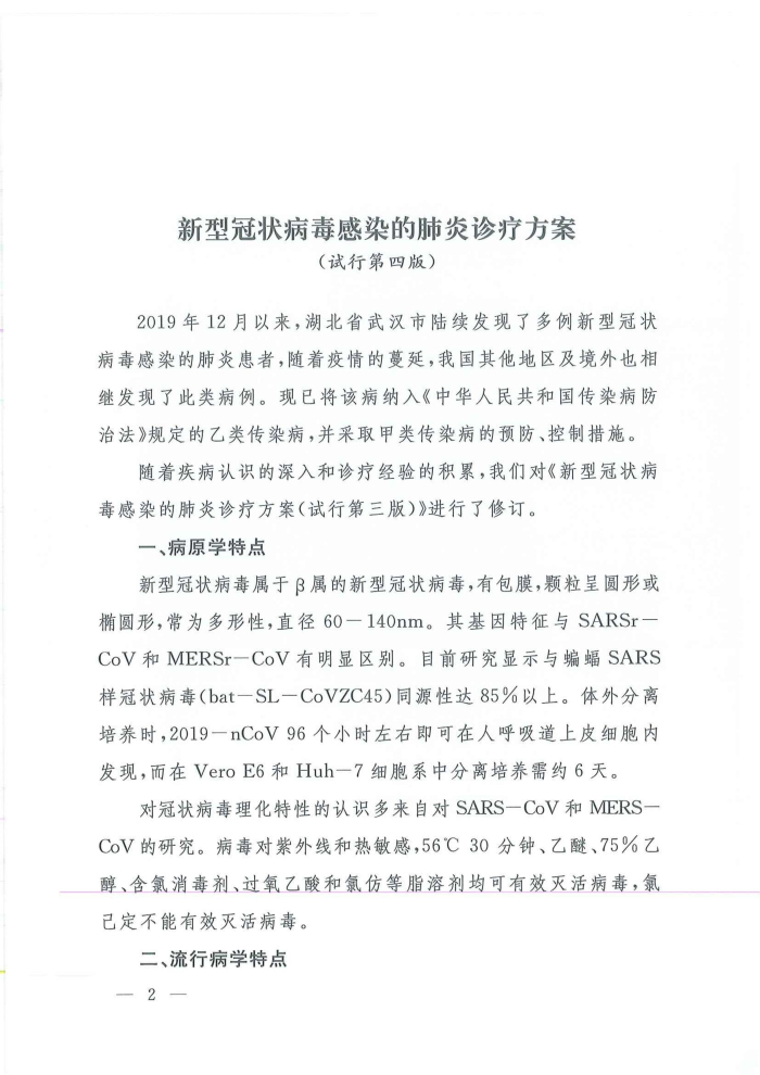 关于印发新型冠状病毒感染的肺炎诊疗方案(试行第四版)的通知