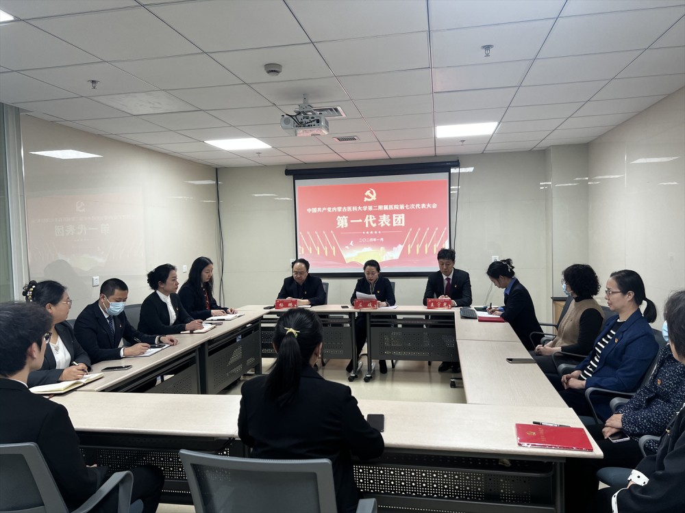 1月25日,中国共产党91直播 第七次代表大会在91直播 学术报告厅隆重举行。本次会议是在全院上下深入学习贯彻党的二十大精神、全面开启91直播 高质量发展建设新征程的关键时刻召开的一次十分重要的大会。内蒙古医科大学党委委员、副校长鲁海文,内蒙古医科大学党委委员、组织部部长项海涛应邀出席大会开幕式。91直播 领导班子成员,在职职工、离退休老干部、本科生和研究生等组成的党员代表,以及由部分党员和民主党派成员、环节干部、学科带头人组成的列席人员参加大会,共商91直播 高质量发展大计。