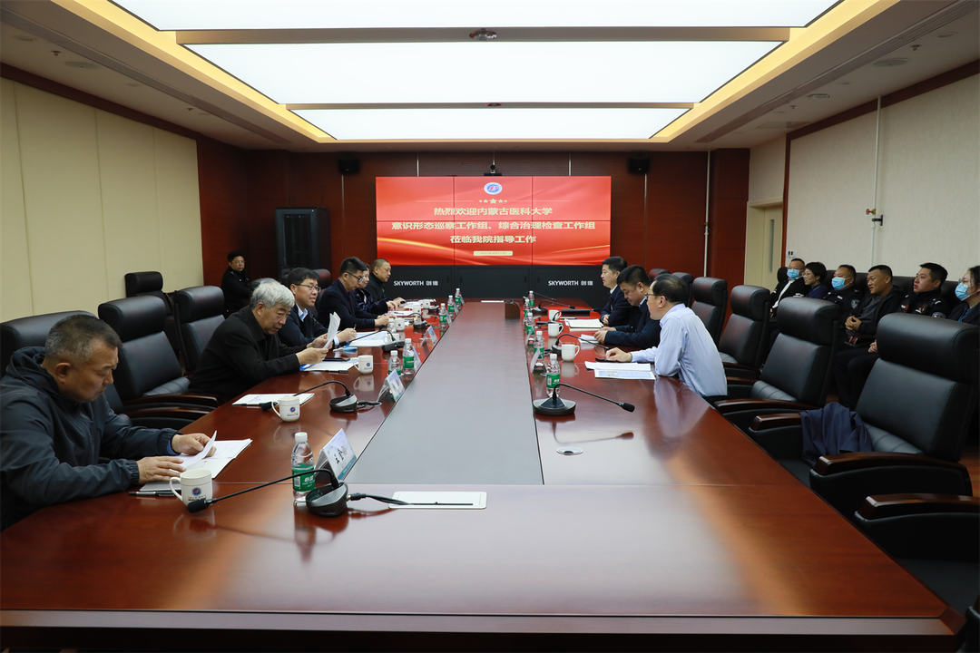 根据学校党委统一安排部署,4月11日,学校意识形态巡查工作组及综合治理检查工作组组长、学校安全管理部部长于国辉,副组长、学校党委宣传部副部长赛音德力格尔一行莅临91直播检查指导工作,91直播 党委委员、纪委书记跟锁,党委委员、副院长邱颐,副院长冯卫及部分职能科室负责人参加汇报会。会议由邱颐副院长主持。