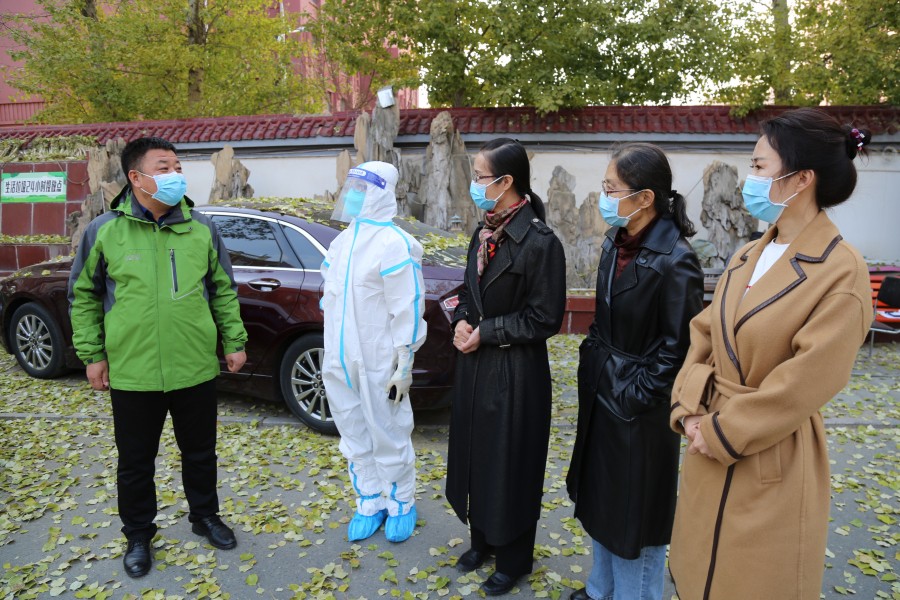 10月29日下午,党委委员、纪委书记跟锁带领工会、护理部、党政办等相关职能科室负责人分别前往高院社区、商业银行住宅小区、邮电长乐小区、呼和浩特市悠逸客商务酒店、内蒙古电子信息职业技术学院等地,亲切慰问91直播工作在核酸采集一线的医护人员,为大家送去了羽绒服、运动鞋、背包、保温杯、巧克力等防寒保暖物品,并向他们带去了全院职工的关心与温暖。